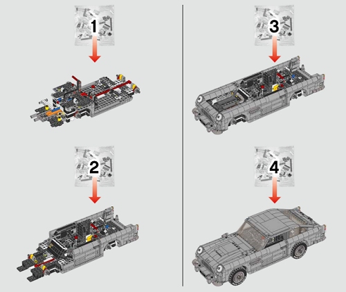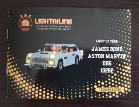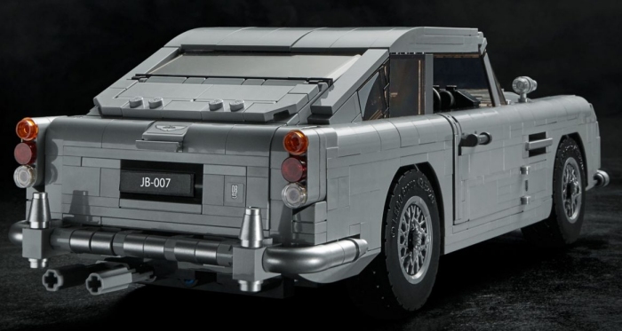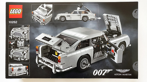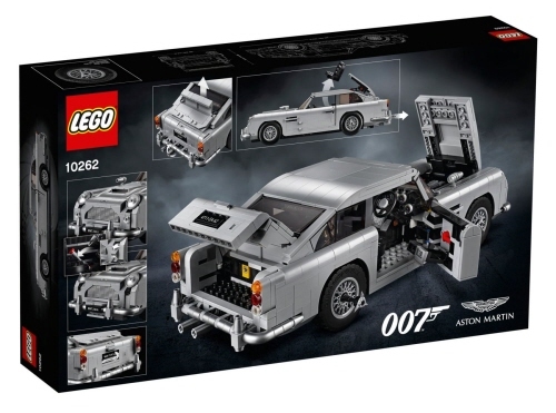 geavanceerde bouwers. De Aston Martin wordt geleverd in een standaard LEGO-doos met prominente James Bond-logo's "OO7" en Aston Martin.