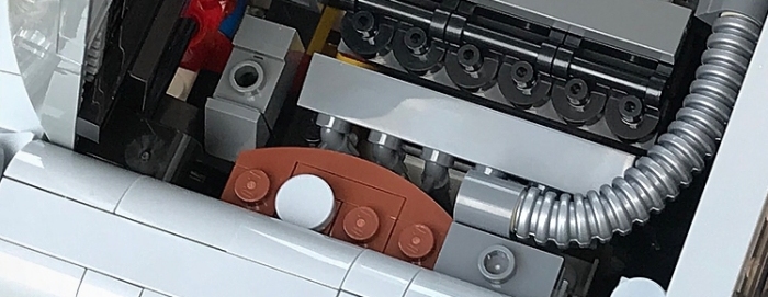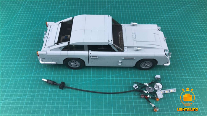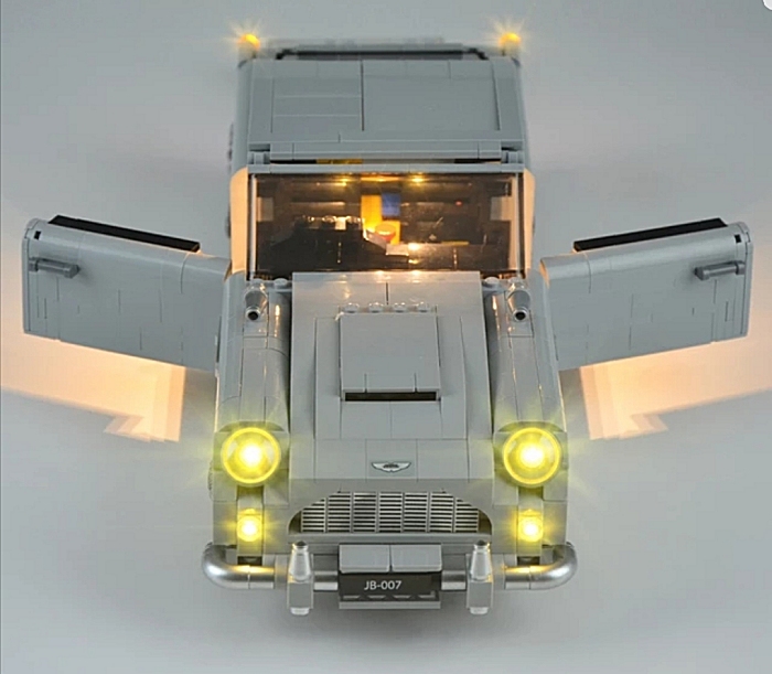 Voor de grill aan de voorkant van de Aston Martin maakt men gebruik van een set van zeven geprinte zilveren 1 x 2 tegels